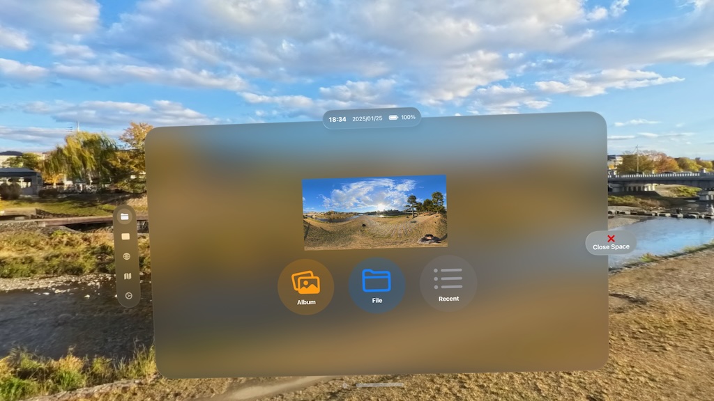 PanoDiveは、写真や動画をAIによって立体化し、まるでその空間の中にいるかのような没入体験を提供するアプリです。ハンドジェスチャー操作に対応し、表示された画像や動画を自由に移動・拡大・回転できます。